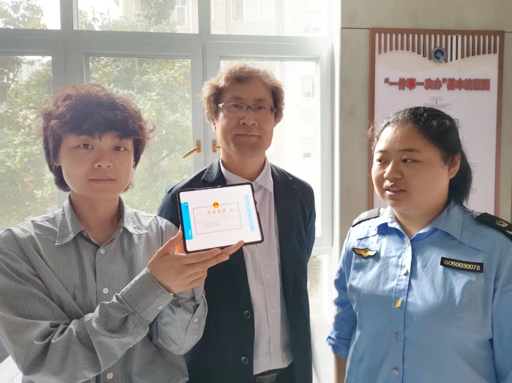 该公司是一家外商投资企业,投资额超2亿美元,主要从事显示器件制造、电子元器件制造,因法定代表人权永吉是位韩国人,现有系统无法支持通过小程序下载电子营业执照。得知情况后,岳阳市市场监管局登记注册科马上向省市场监管局登记注册局、大数据中心汇报情况,得到了省局的联动支持。先由省局在系统平台生成电子营业执照二维码,再由岳阳市局现场核实身份信息,最终帮助该公司成功下载电子营业执照,及时响应了经营者更为便利拓展业务的的需求。