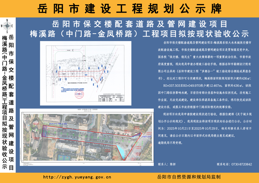 市保交楼配套道路及管网建设项目(梅溪路)拟按现状验收公示