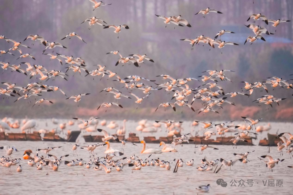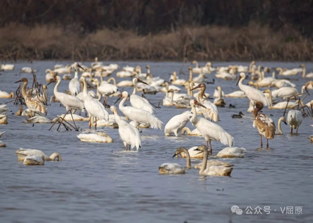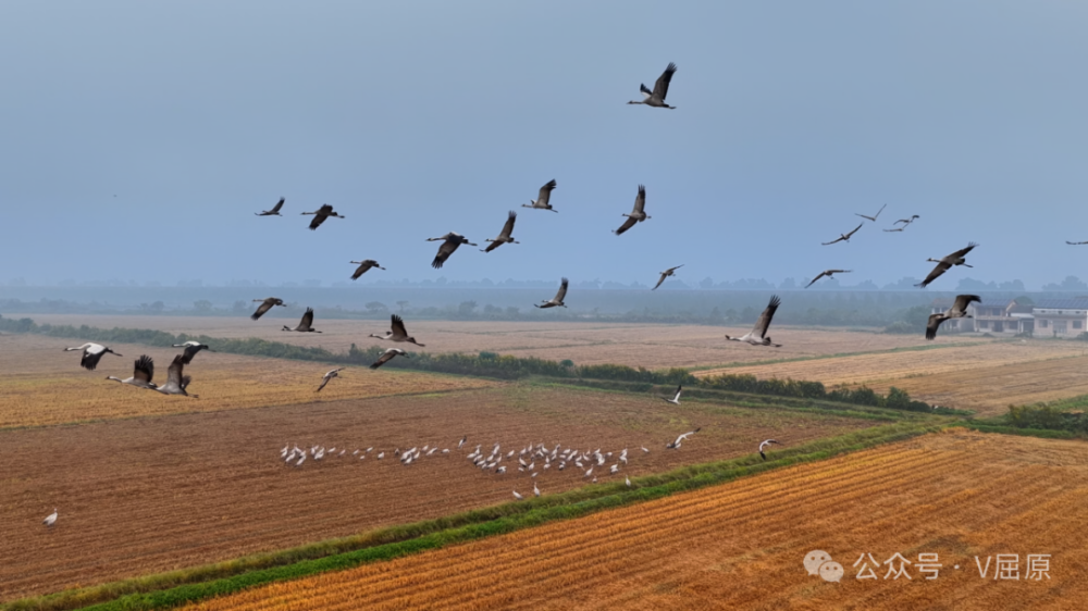 作为洞庭东岔围垦区域,这里工业污染少、农田广布,水稻种植与水产养殖结合的生态农业体系,既能为素食候鸟提供充足植物根茎与粮食残余,也能为肉食候鸟备齐丰沛鱼虾,足以支撑长达四个多月的越冬需求。