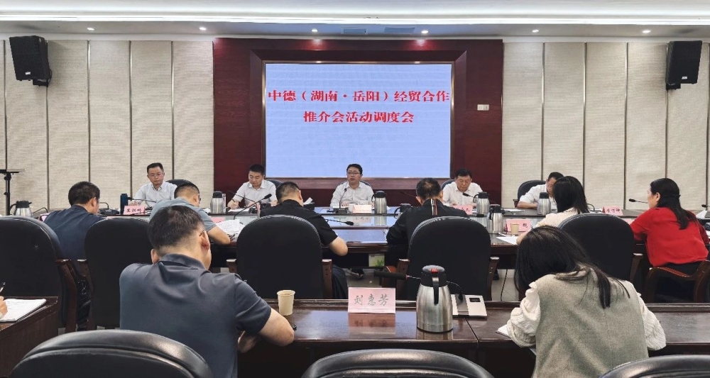 会议听取了中德(湖南·岳阳)经贸合作推介会活动相关情况介绍,并对后段工作进行部署安排、责任明确划分。据了解,第四届湖南(岳阳)口岸经贸博览会将于2024年10月24日至28日在岳阳市举行,以“互融互通,合作共赢”为主题。中德(湖南·岳阳)经贸合作推介会作为此次大会专题活动之一,由岳阳市人民政府、省商务厅主办,中共湘阴县委、县人民政府承办。