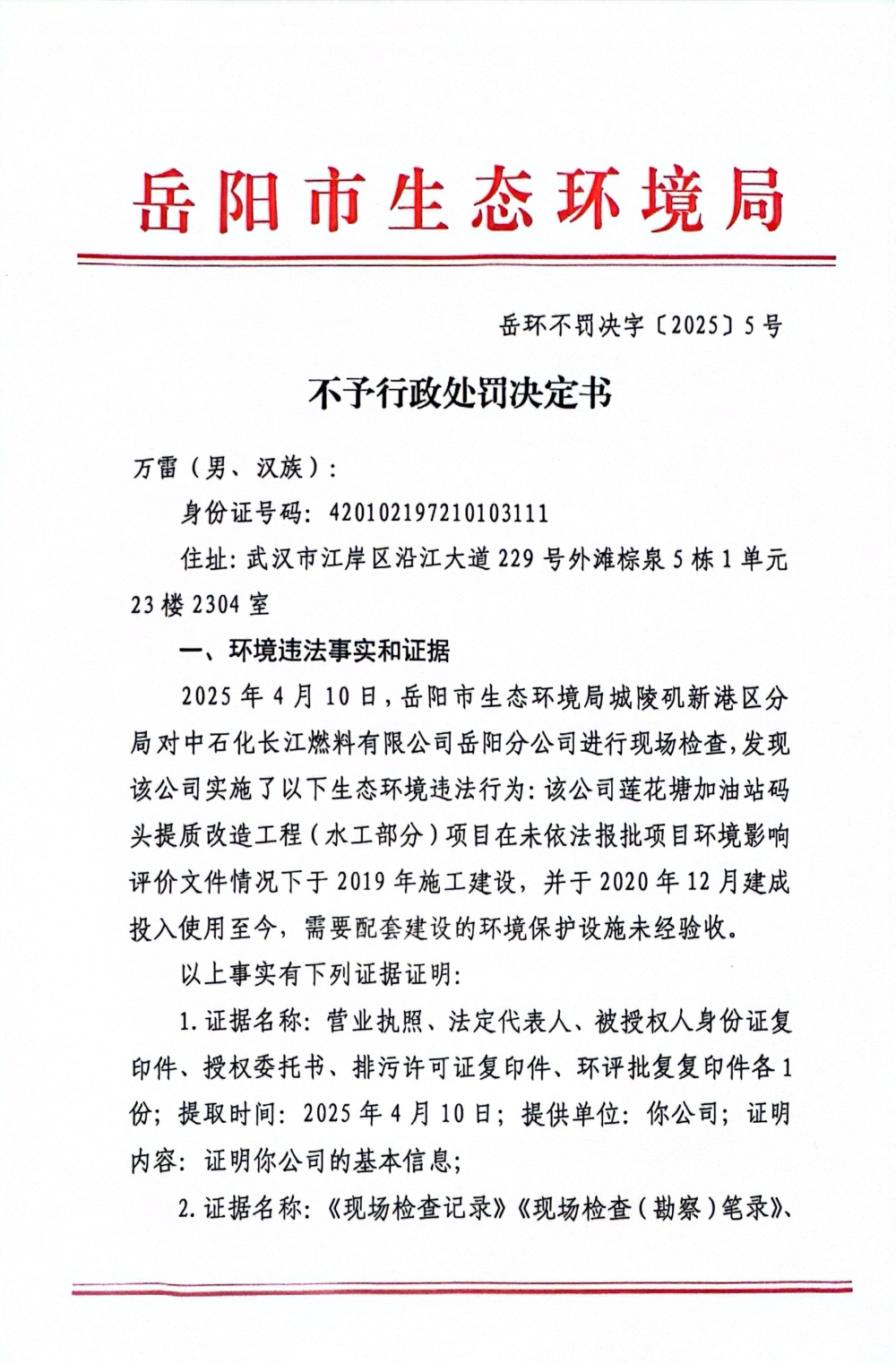 岳环不罚决字〔2025〕5号