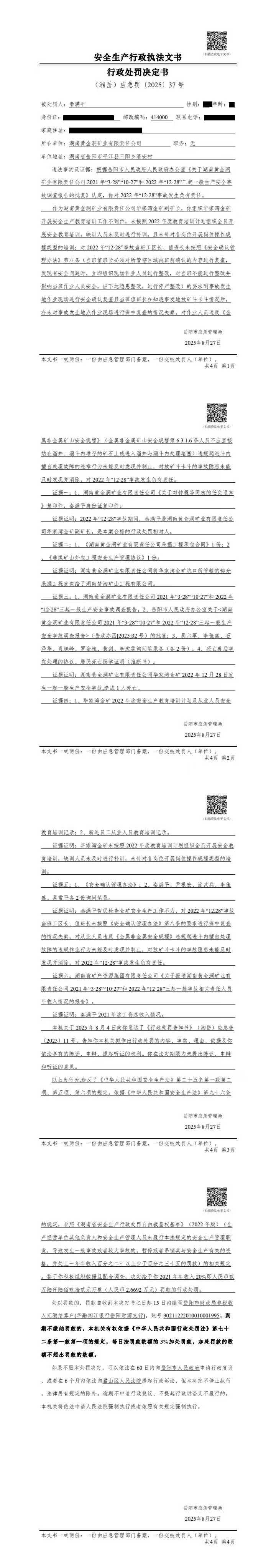 秦满平处罚决定书